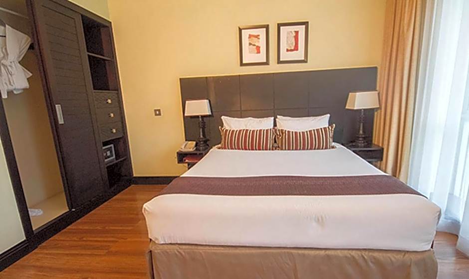 This air-conditioned family unit has 1 queen-size bed in the main bedroom and 2 single beds in the living room. The suite is equipped with a flat-screen TV, a mini-bar.