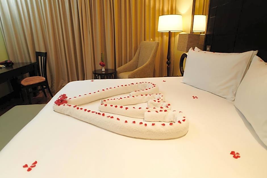This spacious and air-conditioned suite offers garden and pool views. It features a seating area with flat-screen TV, a mini-bar and tea-and-coffee-making facilities.